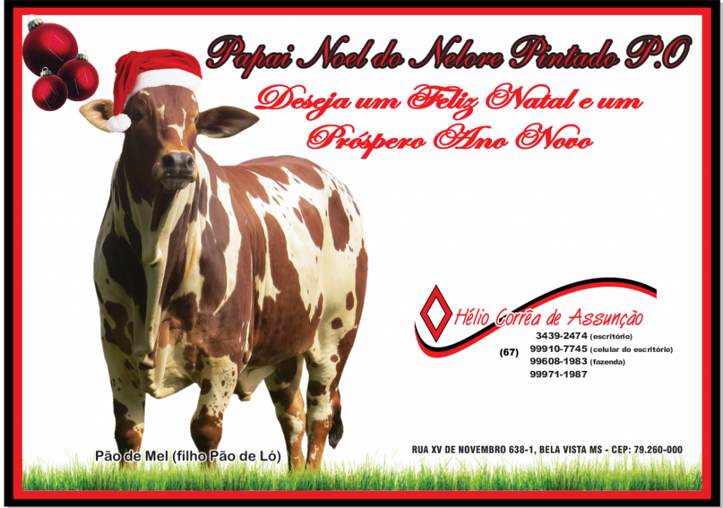 Hélinho Corrêa de Assunção, família e equipe nelore pintado desejam a todos um ano com muitas conquistas e muito sucesso.